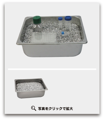 冷蔵庫・インキュベーター・オーブン内で使用可能。ラックではできない温度保持の役割を果たし、試料温度の変化を少なくします。ステンレス製。